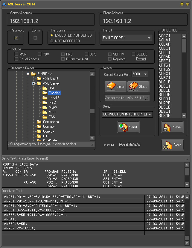 with the AXE interface. The server based program can respond exactly as a live AXE